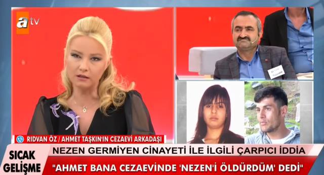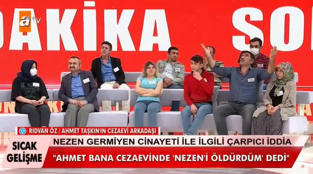 Yayına bağlanarak Nevşehir’in Balcın köyü yakınlarında 15 Mayıs 2013 tarihinde bir dere yatağında ölü bulunan Nezen Germiyen’in cinayetiyle ilgili konuşacağını söyleyen Ahmet Taşkın’ın hapishaneden koğuş arkadaşı Rıdvan Öz, “2013 tarihinde Ahmet Taşkın’la aynı koğuştaydım. Kendisi bana ‘Nezen’i ben öldürdüm onun vicdan azabı çekiyorum’ dedi. Bende vicdan azabı çektiğim için de aradım. Öz abim de oradaydı” ifadesinde bulundu.