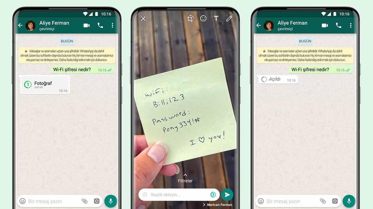 Kullanıcılar, bu özellik sayesinde karşı tarafın yalnızca bir kez görüntüleyebileceği fotoğraf ya da videolar gönderebilecekler. Ancak bu özellik, ekran görüntüsü almaya karşı bir koruma sağlamıyor.