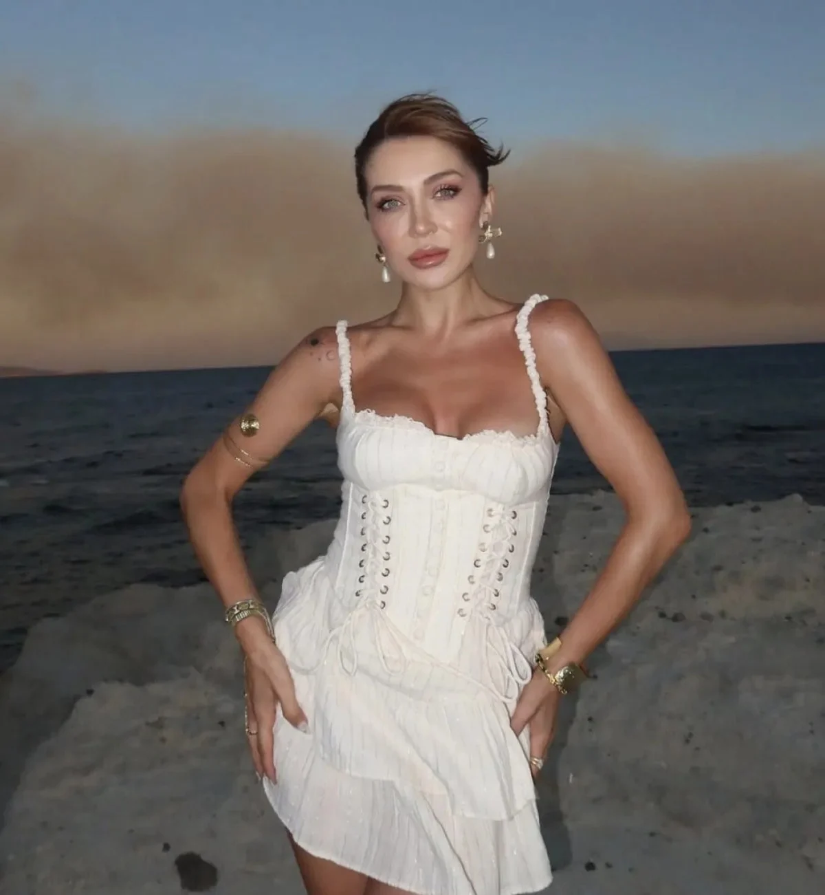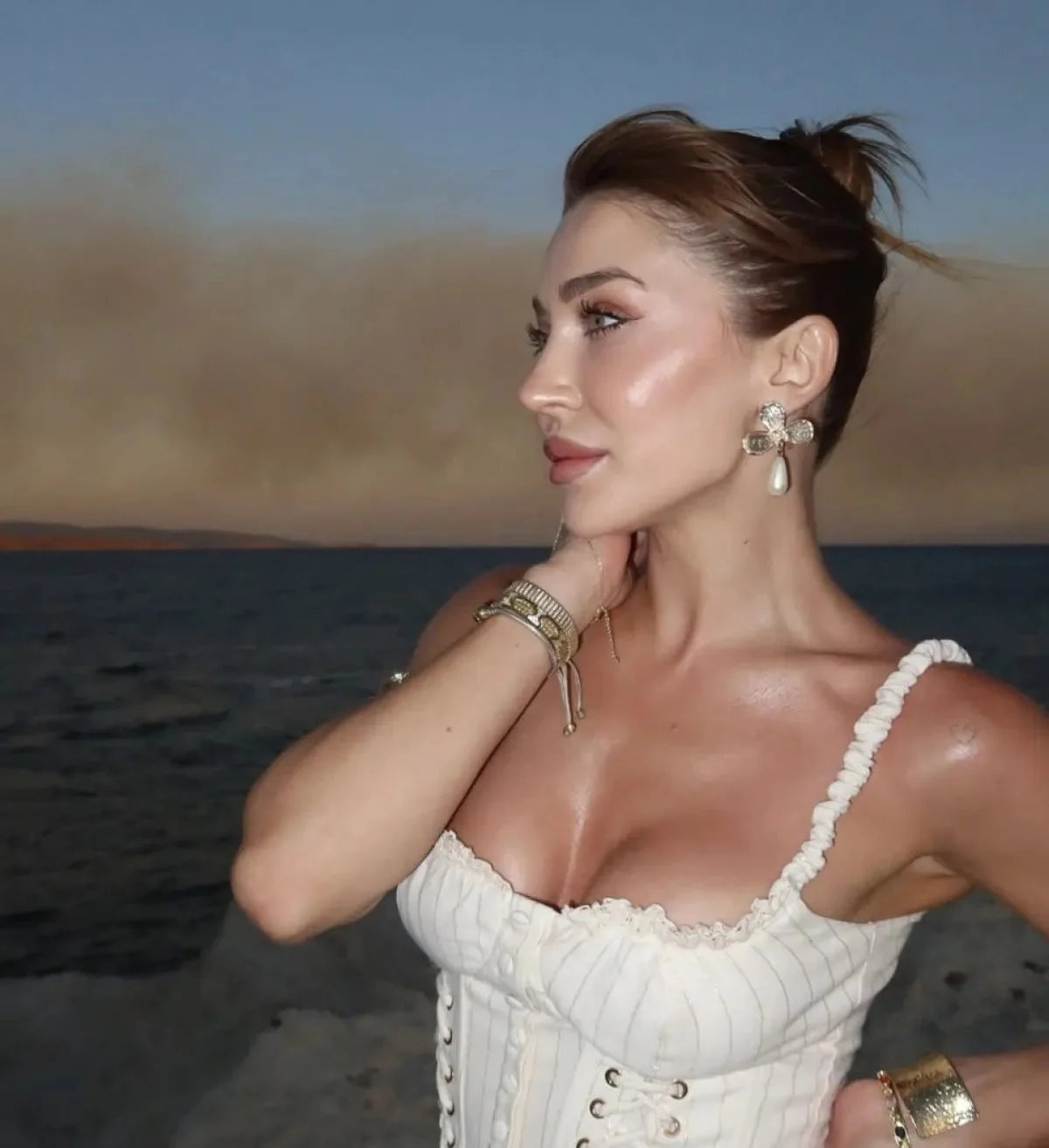 Yangın bölgesine yakın bir noktada çekildiği anlaşılan fotoğraflarda, iki genç kadının yükselen dumanlar eşliğinde poz verdiği görüldü. Sosyal medyada “influencer” olarak tanınan kullanıcıların, duman ve alevlerin oluşturduğu manzarayı “gün batımı” estetiğiyle paylaşması tepkiyle karşılandı.